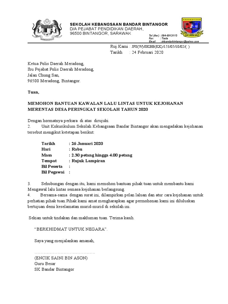 Surat Rasmi Kepada Pihak Polis Perkhemahan Pdf